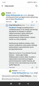 za liczny udział w ankiecie Urzędu Marszałkowskiego/Kolei Wielkopolskich. To dzięki Waszemu zaangażowaniu mamy pewne usprawnienia. Być może w przyszłości KW będa kładły większy nacisk na stację kolejową w Paczkowie.