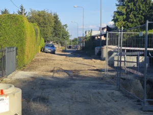 Stan zaawansowania robót: kanalizacja deszczowa 95% wykonania, pozostałe prace podziemne wykonane. Dalsze prace prace wstrzymane na czas zimowy. Rozpoczęcie prac nastąpi w momencie odpowiednich warunków pogodowych. Wykonawca jest w pełni przygotowany do wznowienia prac – ubiegłoroczne problemy organizacyjne zostały rozwiązane.