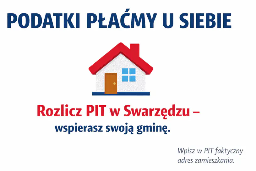 Podatek PIT to jedno z najważniejszych źródeł dochodów gminy. Dlatego warto zadbać o to, by rozliczać się tam, gdzie mieszkamy. To proste: w zeznaniu podatkowym składanym w bieżącym roku za 2025 r. wystarczy wpisać rzeczywisty adres zamieszkania na terenie Gminy Swarzędz.