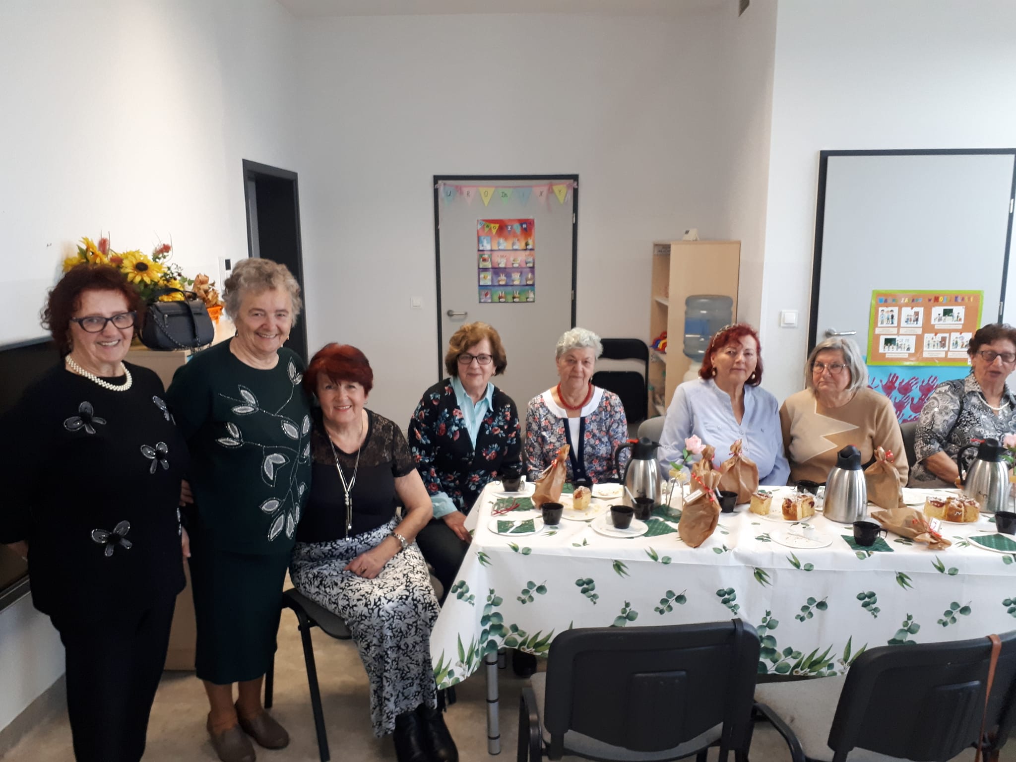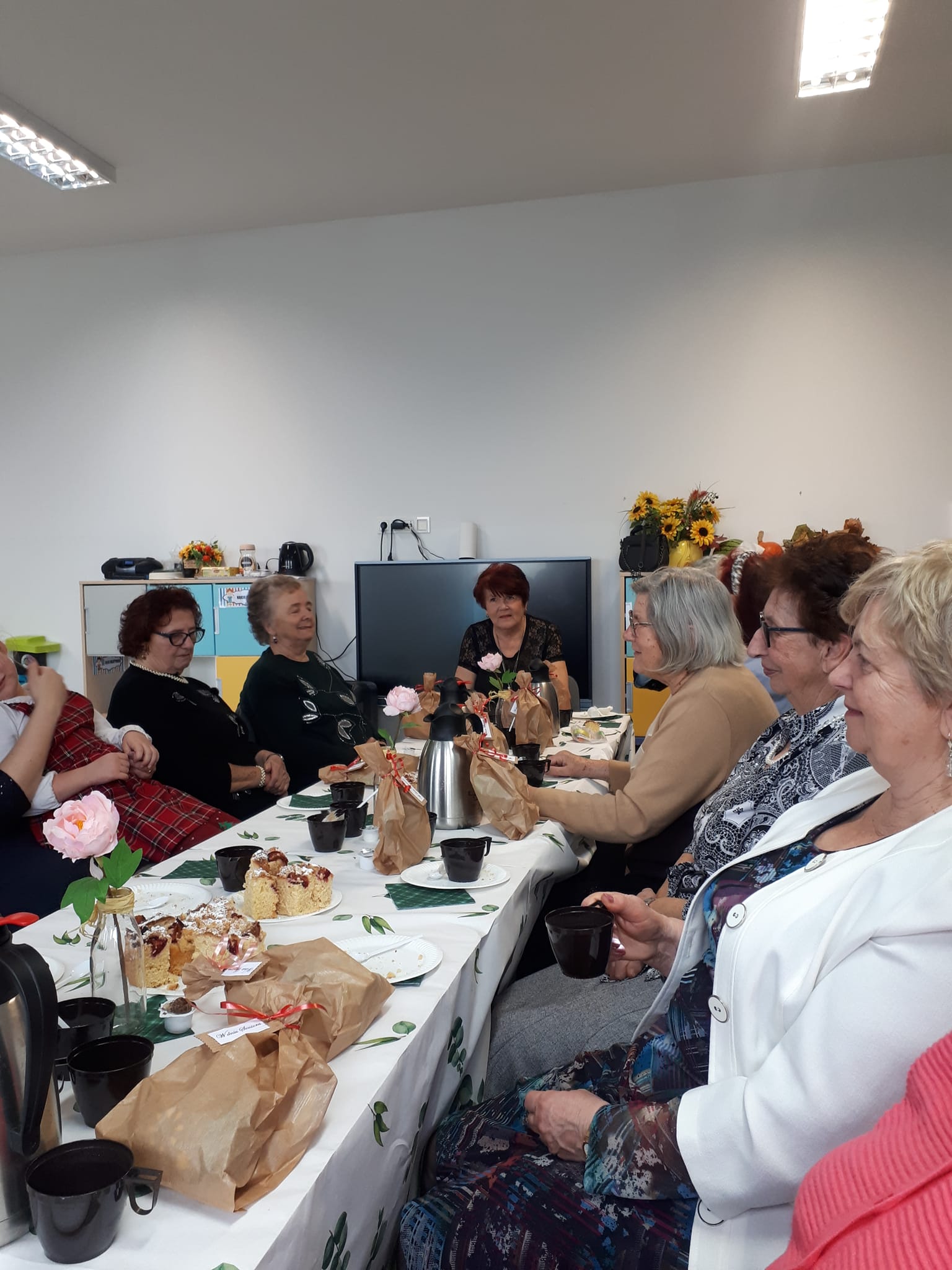 Seniorzy dziękują za zaproszenie, prezenty kawę i pyszny placek drożdżowy przygotowany przez grupę ,,PSZCZÓŁKI,, pod czujnym okiem Cioci Marlenki.