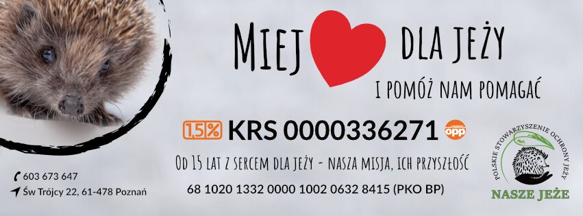 Polskie Stowarzyszenie Ochrony Jeży NASZE JEŻE, ul. Świętej Trójcy 22, 61-478 Poznań, tel. 603 673 647