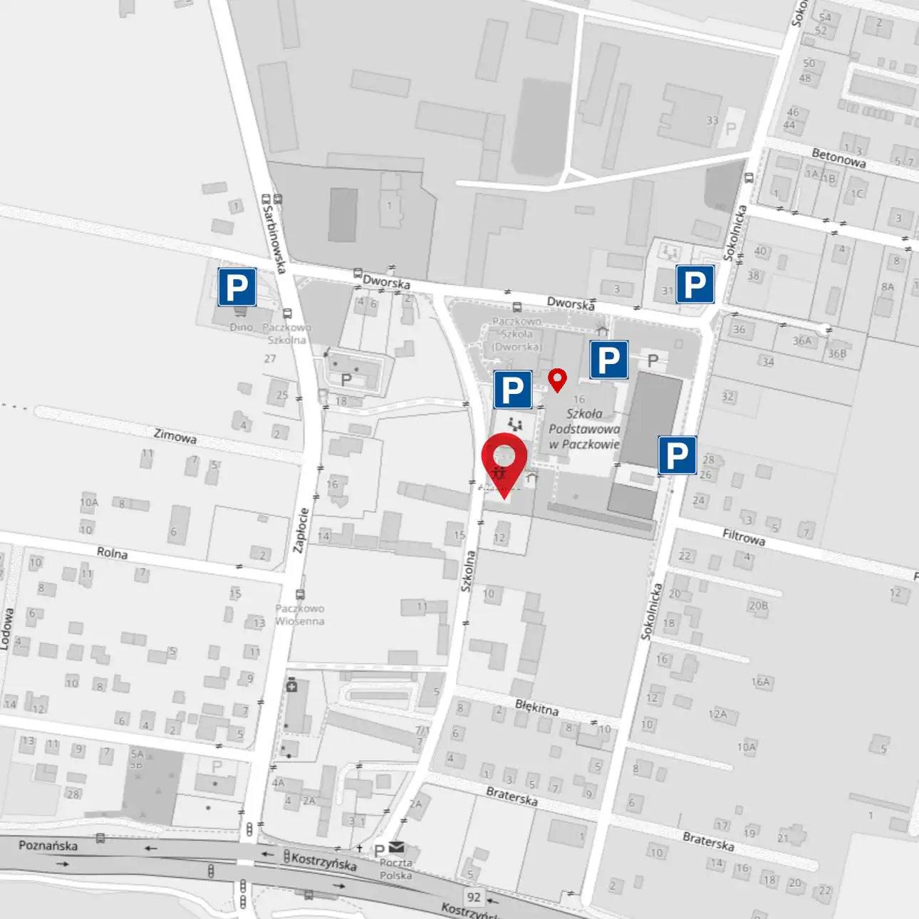 - parking przy Przedszkolu skrzyżowanie ul. Dworskiej i Sokolnickiej