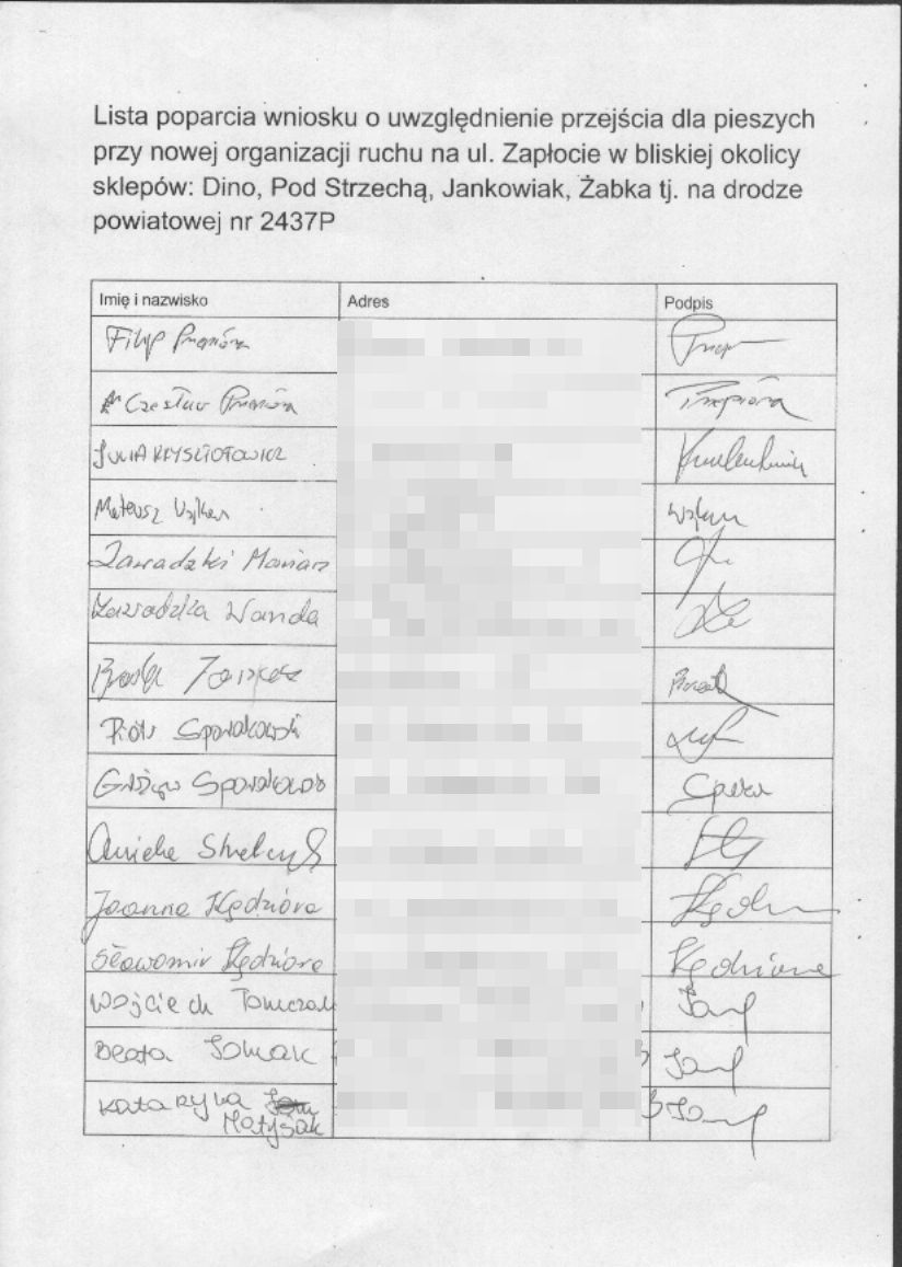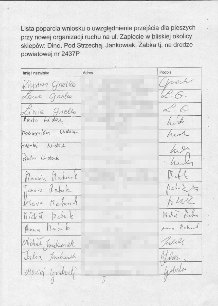 Wobec powyższego 1 października zostało wysłane pismo z wnioskiem do Starosty Powiatu Poznańskiego Pana Jana Grabkowskiego o przywrócenie przejścia dla pieszych. Dziękuję mieszkańcom za zaangażowanie i podpisy w tej sprawie .