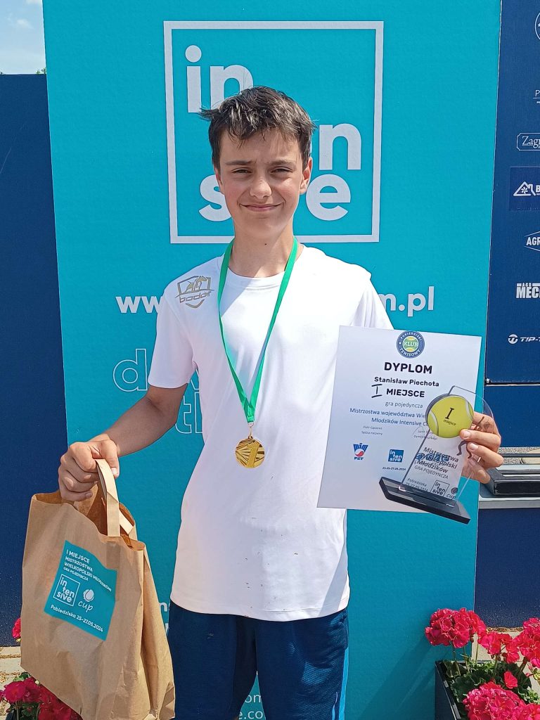 W dniach 25-27 maja 2024 r. w Ośrodku Sportu i Rekreacji w Pobiedziskach odbyły się Mistrzostwach Województwa Wielkopolskiego w Tenisie Ziemnym Młodzików U14. Jest nam miło poinformować, iż Stanisław Piechota, uczeń Szkoły Podstawowej w Paczkowie został ich podwójnym złotym medalistą w grze pojedynczej i podwójnej.