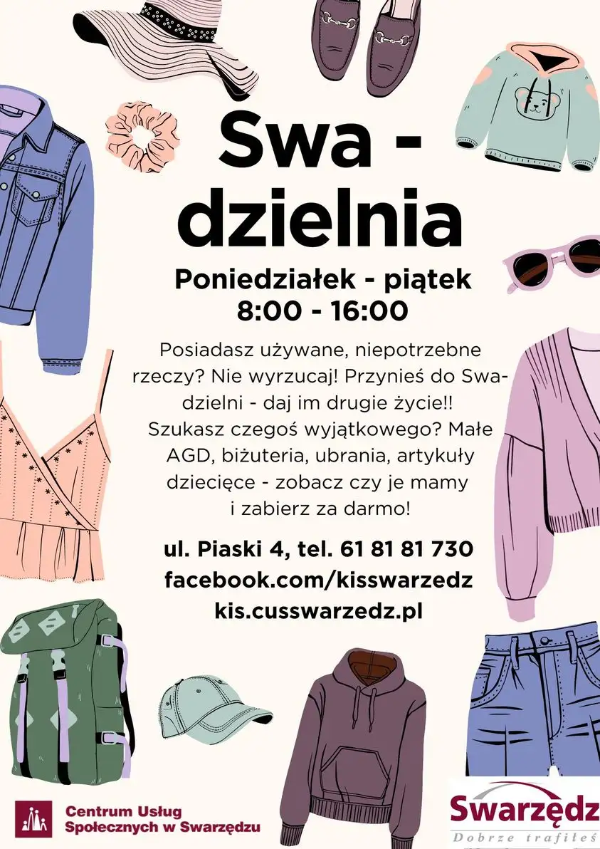 Pamiętajmy, że można dać tekstyliom „drugie życie” i przekazać je potrzebującym – na terenie Gminy Swarzędz działa Swa-dzielnia, która chętnie przyjmuje czystą, niezniszczoną odzież!!!
