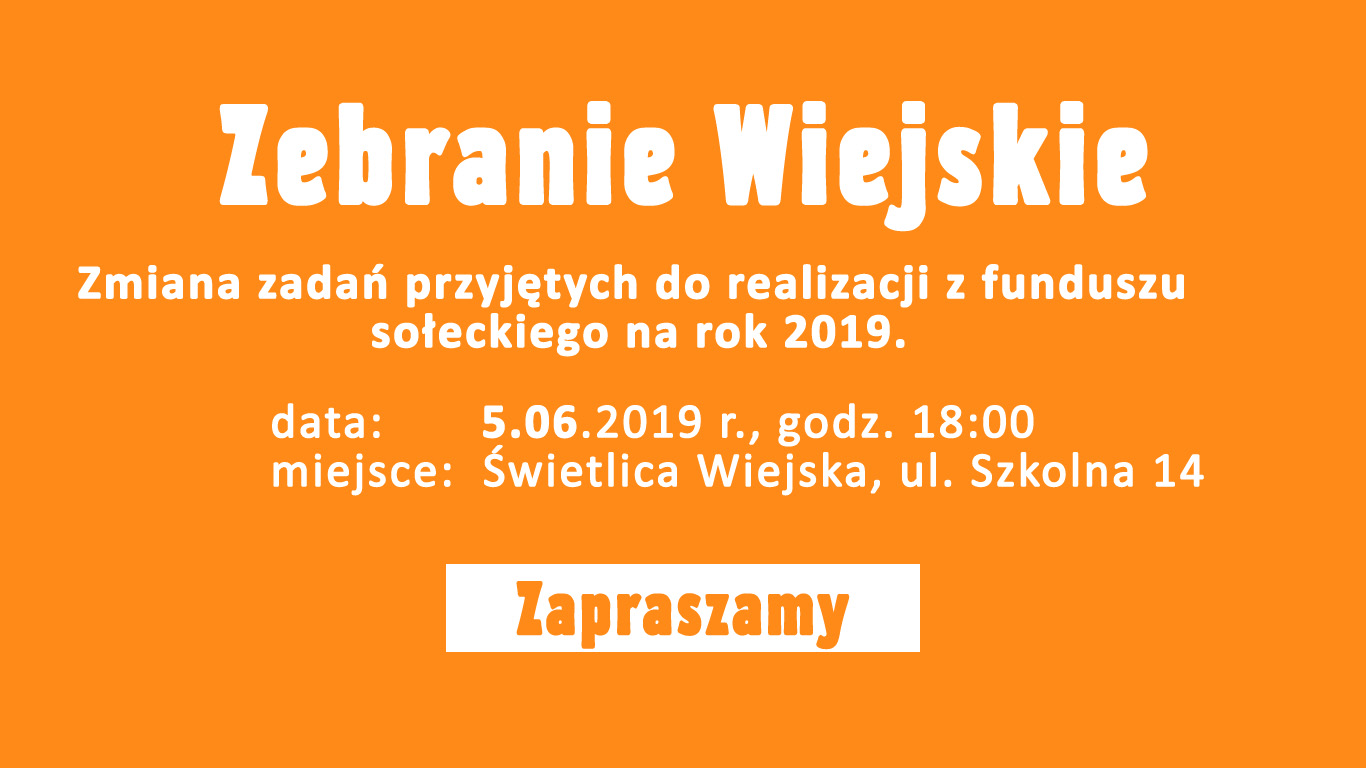 Przedmiotem zabrania będzie zmiana zadań przyjętych do realizacji z Funduszu Sołeckiego na 2019 rok.
