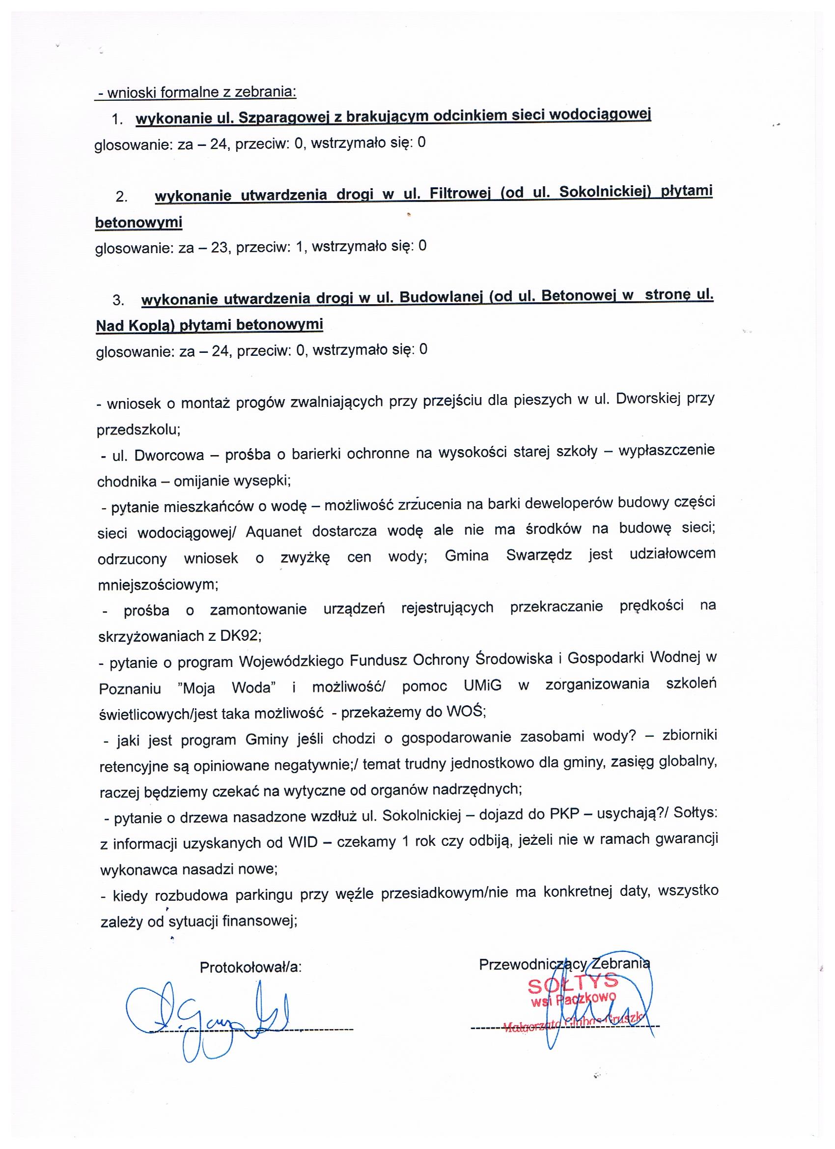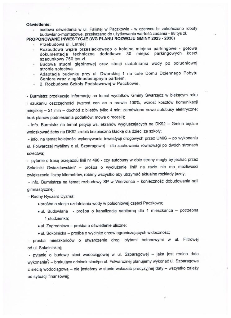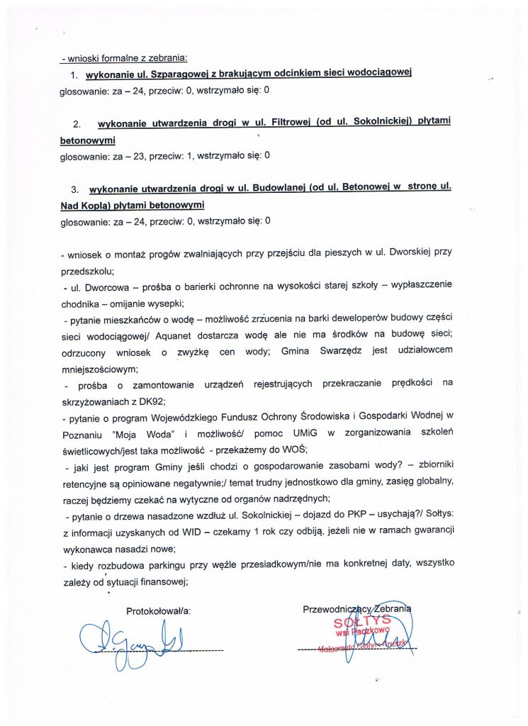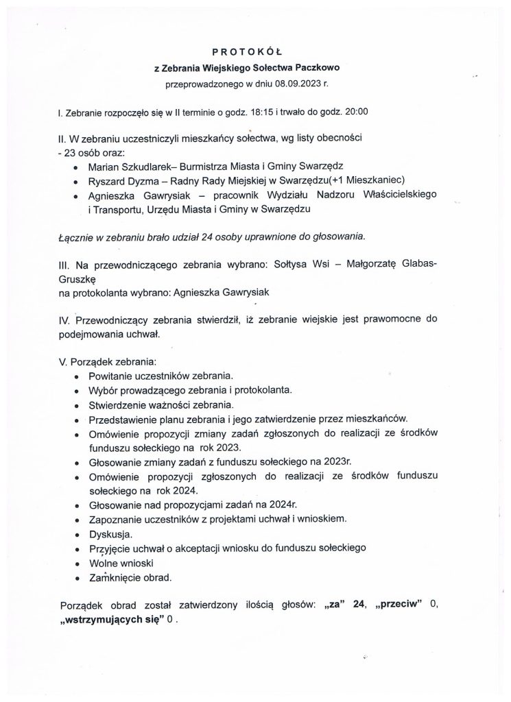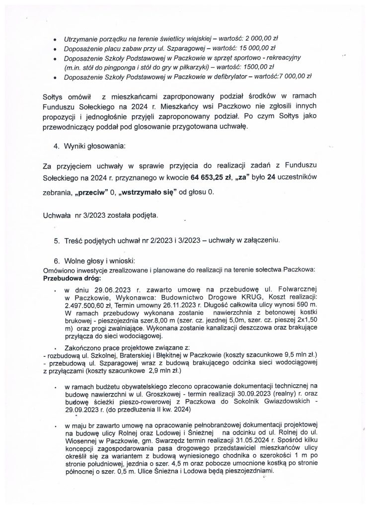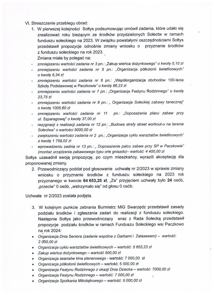 Protokół z Zebrania Wiejskiego w sprawie Funduszu Sołeckiego na 2024 rok